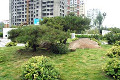 每個(gè)景觀節(jié)點(diǎn)上,植物的配置方法都是不一樣的,如在下沉廣場(chǎng),主要是以小龍柏、金葉女貞等小灌木片植成方形或弧形,間或點(diǎn)綴石楠、梅樹(shù),看起來(lái)規(guī)整、簡(jiǎn)潔;而在設(shè)計(jì)風(fēng)格為江南園林的南廣場(chǎng)上,是將貴重的造型油松單植,通過(guò)不同的組合,形成三個(gè)風(fēng)格相近的綠島,周邊種植美人蕉、玉簪、竹子,并砌起白墻,上面開(kāi)圓形拱門或圓窗,散發(fā)出詩(shī)意江南的靜謐和婉約氣息?!坝雾降朗秦灤┱麄€(gè)景觀的軸線,為了形成曲徑通幽的景觀效果,我們將對(duì)植、孤植、叢植都多種方法結(jié)合運(yùn)用,特別是在三叉路口,多種植海棠、櫻花、杏花等,一方面,花開(kāi)的時(shí)候,綠葉間繁花點(diǎn)點(diǎn),會(huì)吸引人們不斷向前探尋更多的美景;而花落之后,茂密的枝葉又形成隱隱約約的視覺(jué)感受,前方轉(zhuǎn)過(guò)彎后風(fēng)景什么樣,又讓人很想去看看?!备呓?jīng)理笑著說(shuō)。