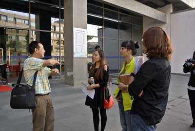 講座結(jié)束后,同學(xué)們?cè)谔釂?/p>