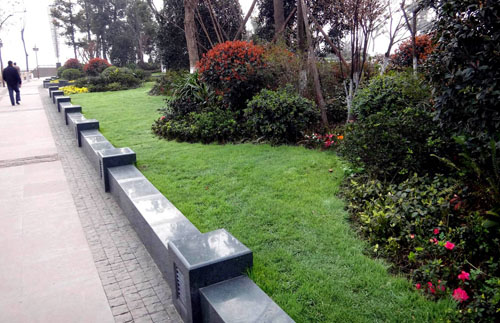 據(jù)李壽仁介紹,保留下來的大樹主要有兩種處理手法:像天竺桂、黃葛樹等幾十年的老樹,在周圍搭建木質(zhì)平臺(tái),既可以保護(hù)大樹,又可供游人休息;一些香樟、桂花、銀杏等,則用森林綠整石圍邊,搭配草皮、三色堇、球類、日本紅楓等植物,采用花境的布置手法,建成一個(gè)個(gè)面積大小不一的花壇,營(yíng)造出四時(shí)風(fēng)光各不同的江南園林意境。而平滑、細(xì)膩的森林綠整石,既是景觀的一部分,又是漂亮的坐凳,兼顧了景觀與實(shí)用的功能。