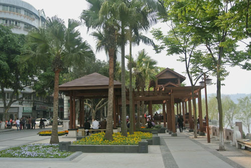 經(jīng)過近半年的不懈努力,如今,這里的景觀效果已初見成效,生態(tài)自然的園林美景,濃郁厚重的人文氣息,使這里再次成為酒城瀘州的一處標(biāo)志性景觀,成為廣大市民的一處休閑樂園。站在高處的建筑上往下看,新建成的館驛嘴廣場(chǎng)猶如一艘動(dòng)感十足的航船,迎風(fēng)破浪,向著江心直行而去;而廣場(chǎng)上無數(shù)的游人,則如船上的乘客,悠閑愜意地欣賞著江中的美景。
