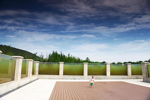 天師廣場:和天師嶺、創(chuàng)教路、鶴鳴臺等景點一起,集中展示張道陵天師歷經(jīng)得道、修煉、斗法、立教、升天,羽化成仙的過程,再現(xiàn)張?zhí)鞄煹男薜乐啊V場呈半圓形,設有特色鋪裝、臺階花壇、觀景錯層平臺等硬性設施,觀景平臺與水上世界自然融為一體,伴著徐徐微風,云龍湖的美景盡收眼底。