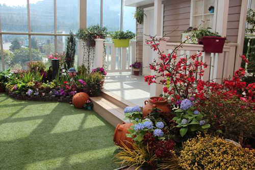 一般陽臺(tái)、露臺(tái)等部位以散射光為主,陽光直射時(shí)間相對(duì)較少,且溫度與外界相差不大,故植物在選擇時(shí)應(yīng)具有一定的耐陰性與抗寒性。
