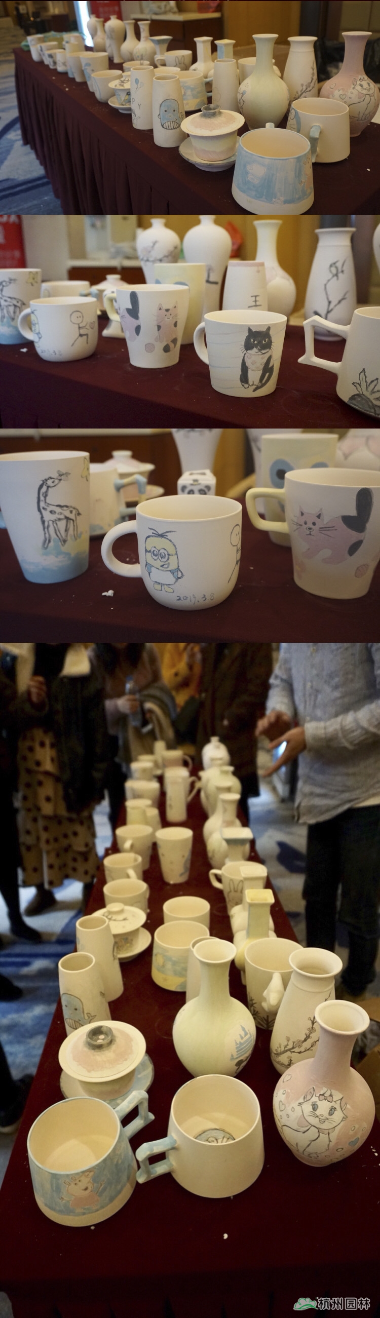 說起陶藝,大家想到的肯定是雙手扶著轉(zhuǎn)盤上的陶泥,捏出形態(tài)各異作品的場景,但今天我們玩點(diǎn)不一樣的。素胚固然清爽,但少了色彩的點(diǎn)綴,總會覺得好像黑白電影略顯枯燥。是的,這次我們將畫紙搬到了這些瓶瓶罐罐之上。認(rèn)真的女人真的很美,一幅幅生動的畫作在短短的一個多小時的時間里展現(xiàn)在了大家的眼前。有山水,有動物,有卡通畫,有說要送給家中寶寶的,也有說這代表了我們一家三口的。拿起畫筆的小仙女們,不再是那些個日常辦公室里的形象了,她們在今天,把自己的可愛、風(fēng)趣、溫婉、隨性等等面貌展現(xiàn)得淋漓盡致。