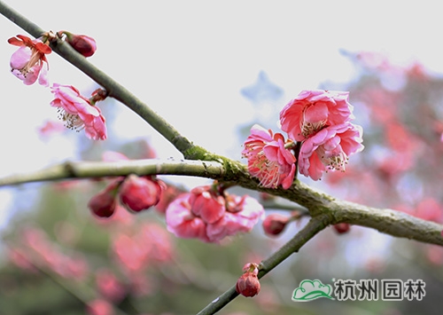 梅花Armeniacamume Sieb,薔薇科梅屬,落葉喬木,高達(dá)10m?;?/span>l~2朵單生,具短梗,芳香,在冬季或早春葉前開放。梅樹蒼勁古雅,疏枝橫斜,梅花傲霜斗雪、凌寒獨開、清雅俊逸。栽培歷史長達(dá)2500年以上。古樸的樹姿,素雅的花色,秀麗的花態(tài),恬淡的清香,和豐盛的果實,自古以來就為廣大人民所喜愛,為歷代著名文人所謳歌。賞梅之風(fēng)自古至今連綿不絕,賞梅以聞香、觀姿、品風(fēng)骨為主。