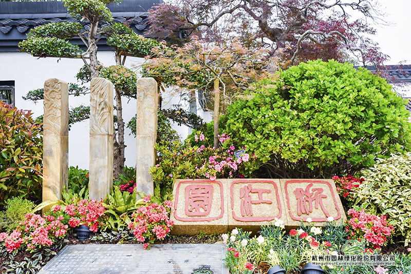 位于浙江園主入口西側的景觀小品“浙江印”,提煉自石鼓篆書第一人、西泠印社首任社長吳昌碩先生的書法作品,三方極具浙派篆刻風格的印章上,“浙江園”三個字,干凈、利落,古樸、大氣。這幅美景的背后,是深化設計團隊數(shù)次往返西泠印社,從無數(shù)的篆刻名家作品中挑選、比對,決定采用最能代表浙江篆刻藝術的吳昌碩先生字體,從中找出“浙”、“江”、“園”三個字,在設計圖中反復比對,調整位置、大小,最終確定下來。