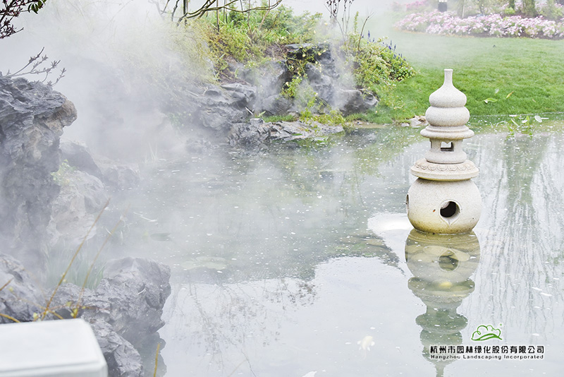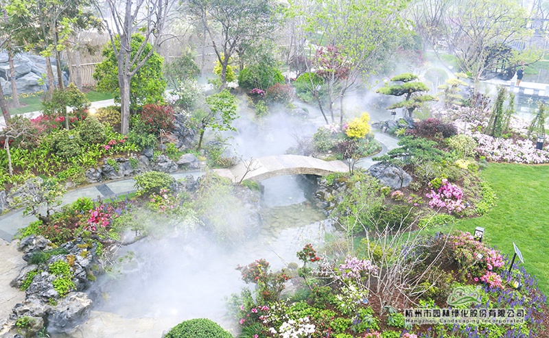 “延慶空氣干燥,而浙江園內(nèi)的植物,基本來(lái)自氣候溫潤(rùn)的南方,因此,如何有效保水和增加空氣濕度,以此來(lái)提高植物的成活率和保證后期生長(zhǎng),是我們施工時(shí)必須要考慮的問(wèn)題?!眳切〕烧f(shuō),“所以,園內(nèi)我們一共做了四套系統(tǒng),大樹(shù)根部的滴灌系統(tǒng)和樹(shù)上的噴灑系統(tǒng),大草坪的澆灌系統(tǒng),以及針對(duì)全園的霧森系統(tǒng)?!?/div>