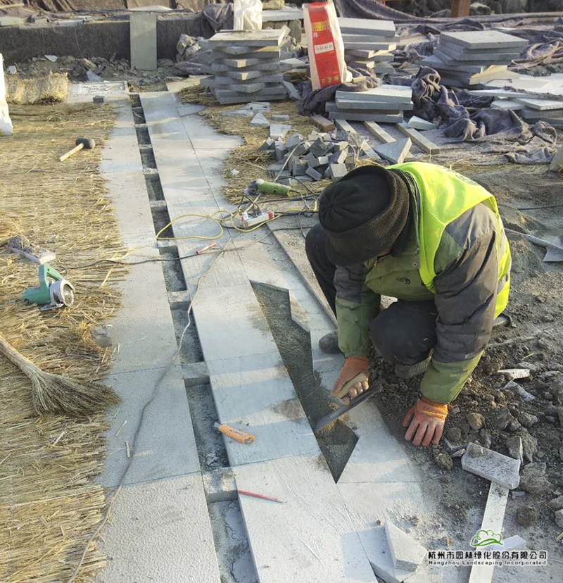 “白天溫度在零度以上時(shí),我們趁著太陽(yáng)出來(lái)、溫度比較高的時(shí)候施工;等太陽(yáng)快下山時(shí),溫度下降很快,這時(shí),我們就停止施工,用毛氈、草墊等將做好的鋪裝蓋起來(lái),再搭上保濕棚保溫。因?yàn)槿绻E胧┳霾坏轿?,白天做好的鋪裝,晚上就會(huì)凍壞,導(dǎo)致白天的工作功虧一簣。一些種好的精品樹(shù)木,如造型黑松,我們就用很厚的棉被包裹起來(lái),以防凍傷?!被貞浧甬?dāng)初的施工過(guò)程,吳小成依然覺(jué)得這是施工中一段時(shí)常難熬的時(shí)期,“零下15℃的時(shí)候,我們還在施工,此時(shí)水已經(jīng)全部結(jié)冰,但施工又離不開(kāi)水,怎么辦呢?我們買(mǎi)了一個(gè)加熱器,把冰放到桶里,再把桶加溫化水,以此來(lái)滿(mǎn)足施工中的用水需求?!?/div>