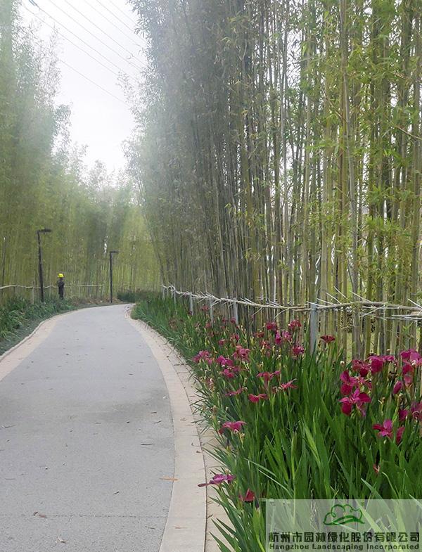 春天,鳶尾花開(kāi),為這條幽靜的竹林小道增添了無(wú)限生機(jī)
