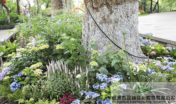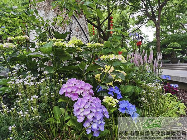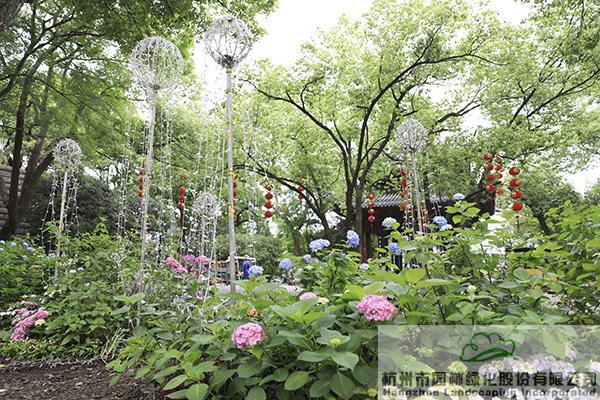 作為本次活動的贊助單位,杭州市園林綠化股份有限公司聯(lián)手繡球花產(chǎn)業(yè)國家創(chuàng)新聯(lián)盟,在城隍閣古樹平臺布置了《花落花開,年華度》為主題的八仙花景觀展示區(qū),“閣樓觀湖二十年,繡球花燈滿堂前”,通過代表浪漫與愛情之美的繡球花境組團(tuán),結(jié)合錯落有致的景觀挑燈和蜿蜒向前的時間軸序,營造出繁花如繡、前程似錦的美好寓意,以此向城隍閣開放20周年獻(xiàn)禮。