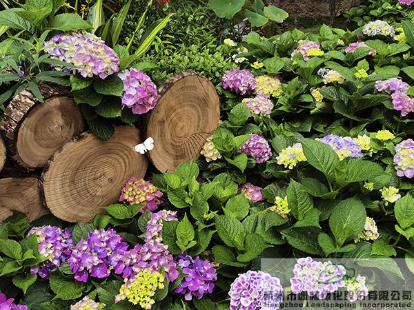 在城隍閣二樓平臺,杭園股份贊助的50余個品種、近400余盆的繡球花也將驚艷亮相,通過豐富的造景方式,充分展現(xiàn)繡球花的魅力。不管是種植在色彩明艷的花箱中,還是與枯木、竹籬笆、瓦片等的搭配,繡球都展現(xiàn)出絕美的風(fēng)姿,吸引著人們探尋的目光,忍不住拿起相機(jī)或手機(jī),留下一個個精彩瞬間。其中,花大色艷、色彩可調(diào)的大花繡球‘搖擺樂’、‘藍(lán)寶石’,矮小可愛,青澀潔白的圓錐繡球‘活力青檸’,花如寶塔、葉形如掌的重瓣櫟葉繡球‘雪花’等,是杭園股份今年主推的品種,表現(xiàn)都非常搶眼。