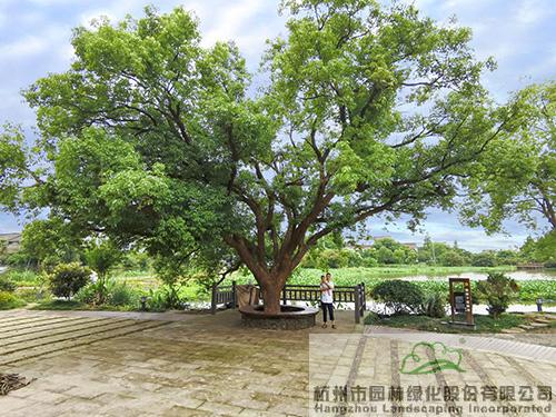 村前的小公園,是村民飯后散步、乘涼的好去處。用舊青磚搭配舊瓦片、老石板、老石磨等營造的低矮景墻,在劃分空間的同時(shí),更成為一種懷舊情感的寄托,與白墻黑瓦的建筑遙相呼應(yīng),營造出古樸、寧靜的氛圍。幾株大香樟樹枝繁葉茂,灑下一地綠蔭,成為村民乘涼的好去處,它們陪伴村民走過了幾十年的風(fēng)雨,見證了村莊的發(fā)展變遷,寄托著村民的鄉(xiāng)愁。為了保護(hù)它們,施工時(shí)禁止大型機(jī)械進(jìn)場,全部采用人工作業(yè),并在周邊進(jìn)行保護(hù),搭建防腐木樹池坐凳,既可以保護(hù)大樹,又可供村民在此閑坐。植物配置充分考慮當(dāng)?shù)氐拿耧L(fēng)民俗,聽取村民意愿,種植枇杷、桃樹、梨樹、蘋果樹、紅葉李、柿子樹等果樹,搭配桂花、無患子、銀杏等鄉(xiāng)土樹種,營造出濃郁的鄉(xiāng)村田園風(fēng)情。