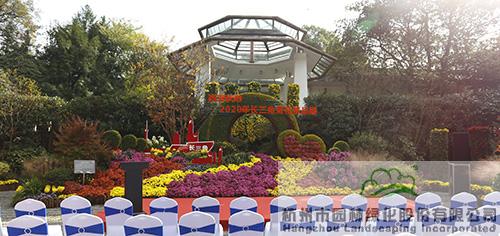 由杭園股份設(shè)計及施工的展品《江海相望 菊影弄潮》,以傳統(tǒng)園林中的月門為主景,結(jié)合浪、船、影等構(gòu)圖元素,運(yùn)用花帶、花球、綠雕等形式,以菊的情致攜西湖的精致,動靜結(jié)合,營造出潮起江海、劈浪前行,守望相助、璀璨芳華的生動意境。此景象征著新時代長三角一體化“引航遠(yuǎn)帆”的涌動和發(fā)展;講述著中華兒女?dāng)y手抗疫、共克時艱的動人故事。
