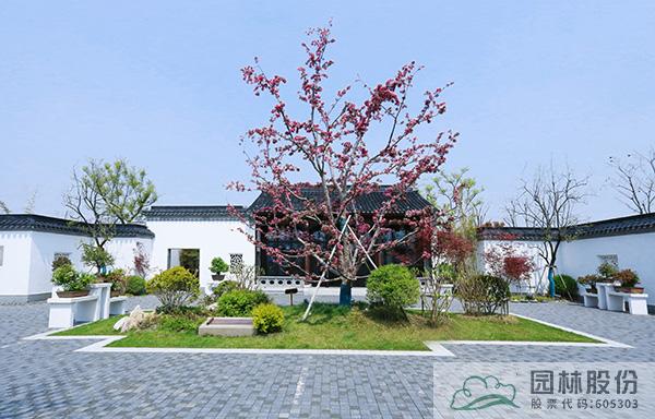 盆景園內,一棵棵造型別致的盆景,是海棠另一種形態(tài)的展現(xiàn)。院子中央,高大的‘豐盛海棠’正迎來盛花期,深粉色的花朵密密匝匝布滿枝頭,成為院中最引人矚目的風景,與院子里的五棵柿子樹搭配種植,組合成“五世同堂”的美好寓意,寓示著日子紅紅火火、闔家歡樂吉祥。在主建筑旁的天井處,采用盆景化的造園手法,運用南天竹、黑松、石子等元素營造的植物小景,自成一方小天地,與整個盆景園形成“園中園”的關系,展現(xiàn)出造園者的奇妙心思。