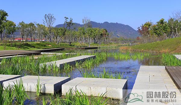 項目還充分利用滸溪及靈峰湖沿線的湖灣和眾多洼地,引水入園,打造雨水花園、下沉式綠地等,通過豐富的植物配置與景觀小品,形成沿湖而生的各個景點,并設置各色景觀橋連通內(nèi)塘與外湖的生態(tài)通道,將周邊景點有機串連?;据谵ň吧鳟悾馍缴嘤吵扇?,整個滸溪沿線形成一個可循環(huán)的生態(tài)系統(tǒng),有效改善和美化了周邊環(huán)境,展現(xiàn)可持續(xù)發(fā)展的造園理念。