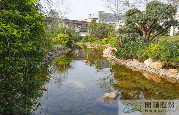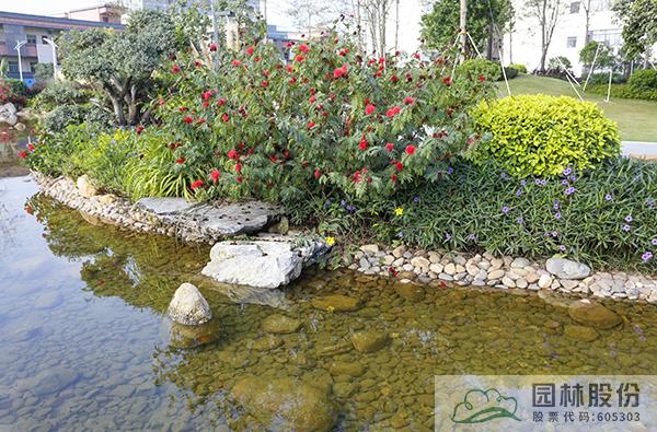 融入海綿城市理念打造的旱溪景觀,用鵝卵石鋪裝,點(diǎn)綴景石,岸邊種植造型水蠟、楊梅、蘆葦、蒲草、三角梅、黃金葉、黃金榕、朱蕉、扶?;ā⒆?nèi)~木、紅千層等當(dāng)?shù)剜l(xiāng)土植物,打造生態(tài)環(huán)保的地域特色景觀風(fēng)貌。