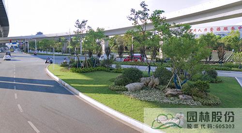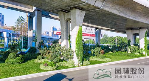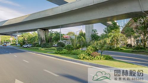 項目綠化施工主要包括道路分車帶、道路兩側(cè)帶狀綠地、節(jié)點綠地、高架橋垂直綠化等區(qū)塊。每個區(qū)塊根據(jù)其功能與特色,通過不同植物配置,營造豐富景觀。