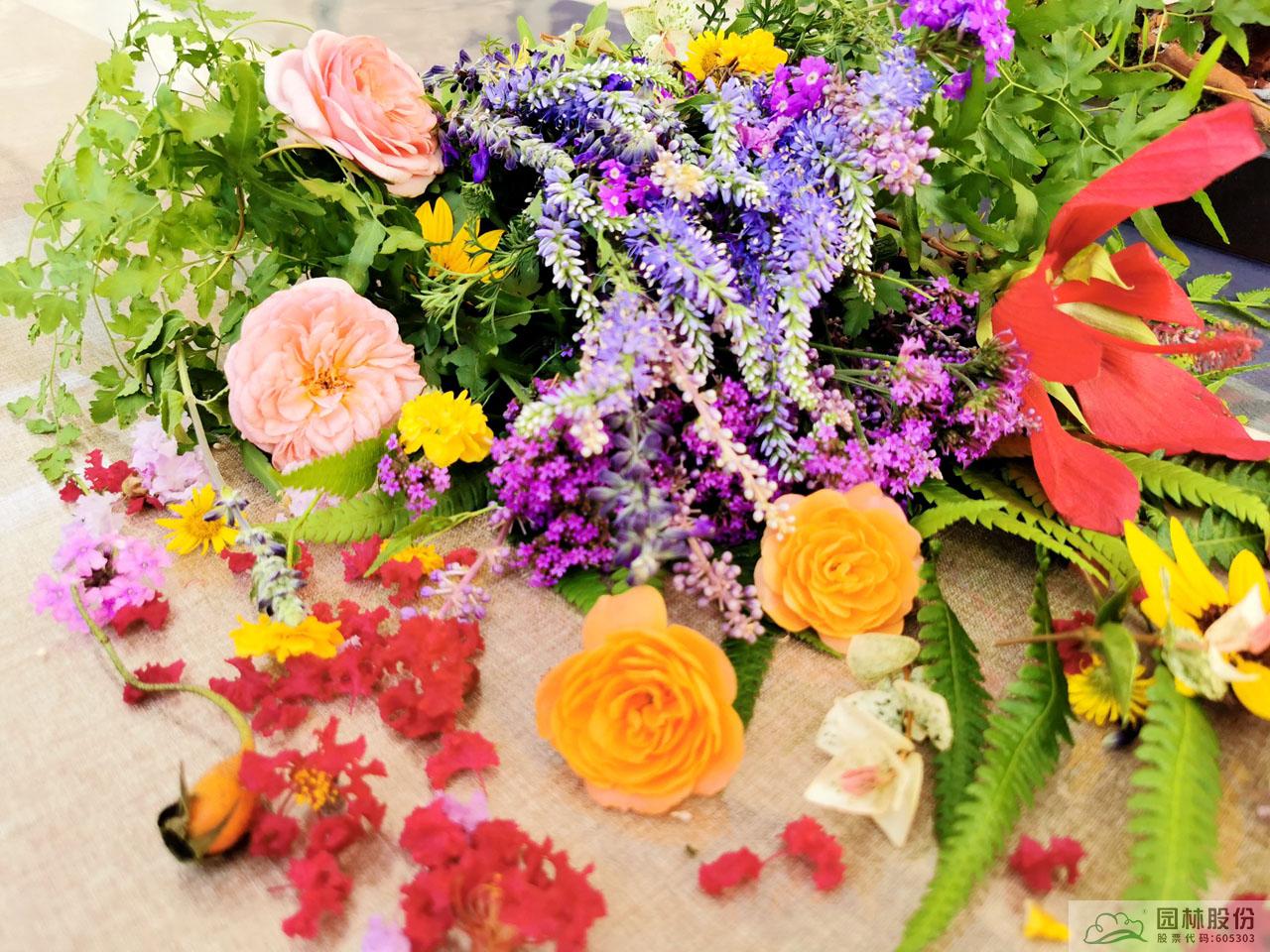 處理好的花材放置陰涼通風(fēng)處,讓表面水分自然散發(fā)。同品種、同色彩的植物分類放好,避免后期制作時出現(xiàn)顏色混淆。