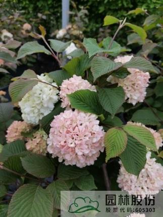 忍冬科莢蒾屬,落葉灌木,國內(nèi)從日本引進,株高可達2.5-3m。新葉成暗紅色,后期會慢慢褪去,呈綠色。整個花序都是不育花,球形,花苞粉綠色,開放后淡粉色,最后變成白色?;ㄆ?月初到5月初。秋天的樹葉顏色多變,像油畫調(diào)色板一樣絢麗多彩。它適應(yīng)我國大部份地區(qū)種植,病蟲害較少。冬季至早春可修剪。一年施肥3次,早春萌芽前,花后及秋季。適合園藝盆栽或庭院觀賞。