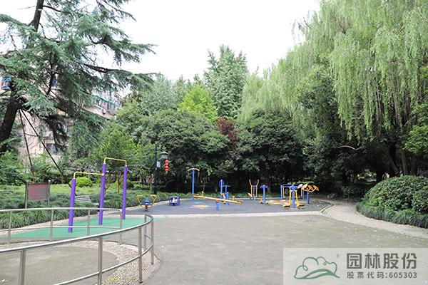 與健身塑膠場相鄰的活動場地為水泥地,與整體風(fēng)格不協(xié)調(diào)。通過鋪設(shè)彩色塑膠,地面增加跳方格、跳遠(yuǎn)、跳房子等圖案,地上增加兒童活動器械,形成兒童活動場地。同時對四周的破損卵石園路進(jìn)行修補(bǔ),增加戶外座椅。