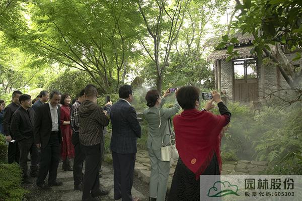 在李壽仁的帶領(lǐng)下,與會(huì)人員首先參觀了畫境·青山湖花園中心室外景觀展示區(qū)。五月的花園中心,綠意盎然,繁花綻放,鋪展開(kāi)一幅生態(tài)自然、清新怡人的風(fēng)景畫卷,引來(lái)大家的不斷贊嘆,紛紛直呼“太美了!”“太漂亮了!”