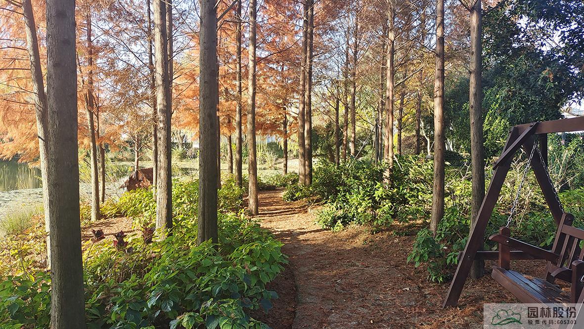 在初冬的日子里,怎能少了水杉、池杉、水松這類落葉針葉樹呢。遠看,褐色的枝葉、豎向的線條,滿滿的都是初冬的靜謐。如果在林下的園路穿梭,還能看到細細密密的落葉灑滿林間,絲絲縷縷的陽光灑落進來,好希望時間一直停留在這一刻。
