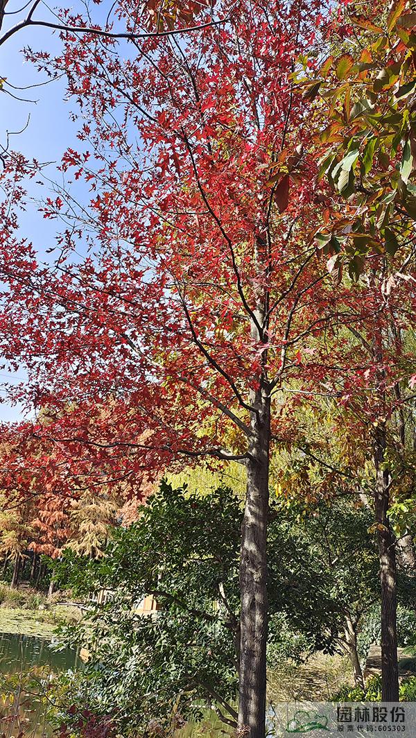 金黃的無患子、絢麗的紅楓、黃紅變換的楓香構(gòu)成了畫境園初冬繽紛世界的三部曲。半島的烏桕、池塘對岸的水杉水松池杉混交林,則如跳動的音符,共同譜寫著初冬的樂章。