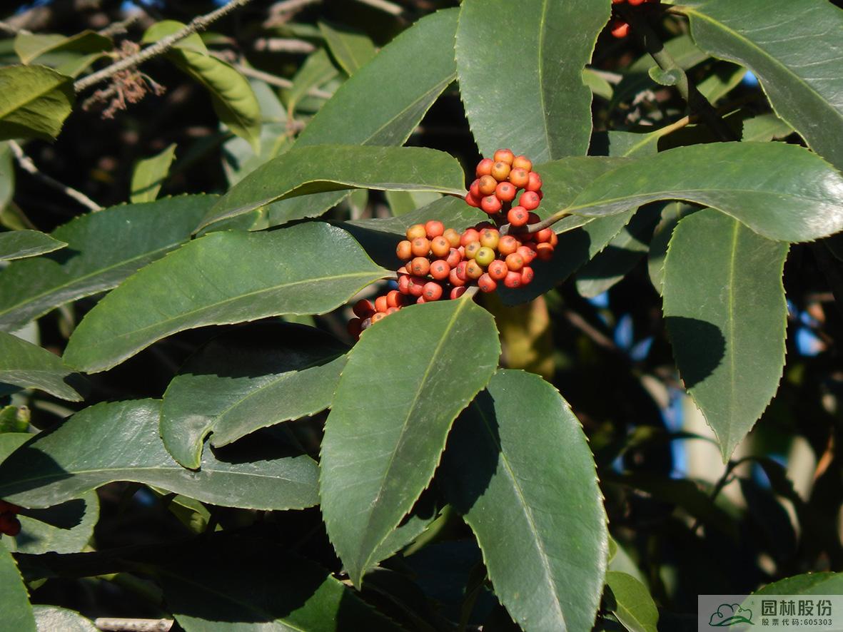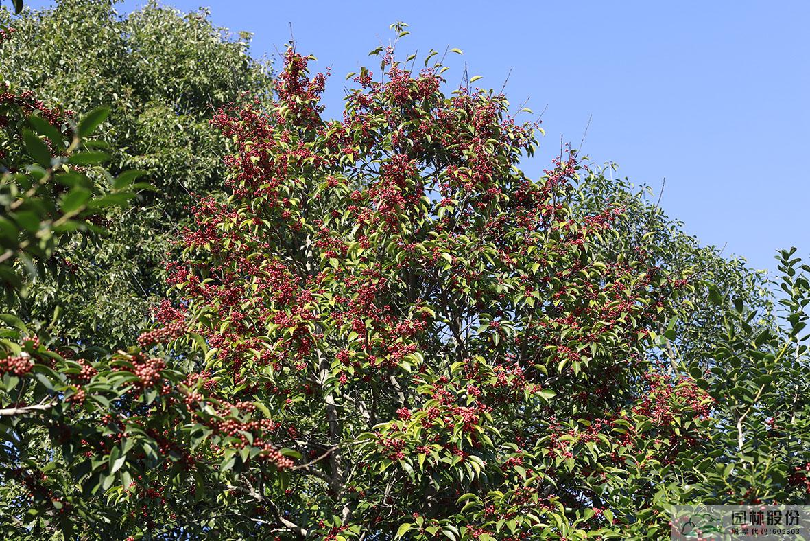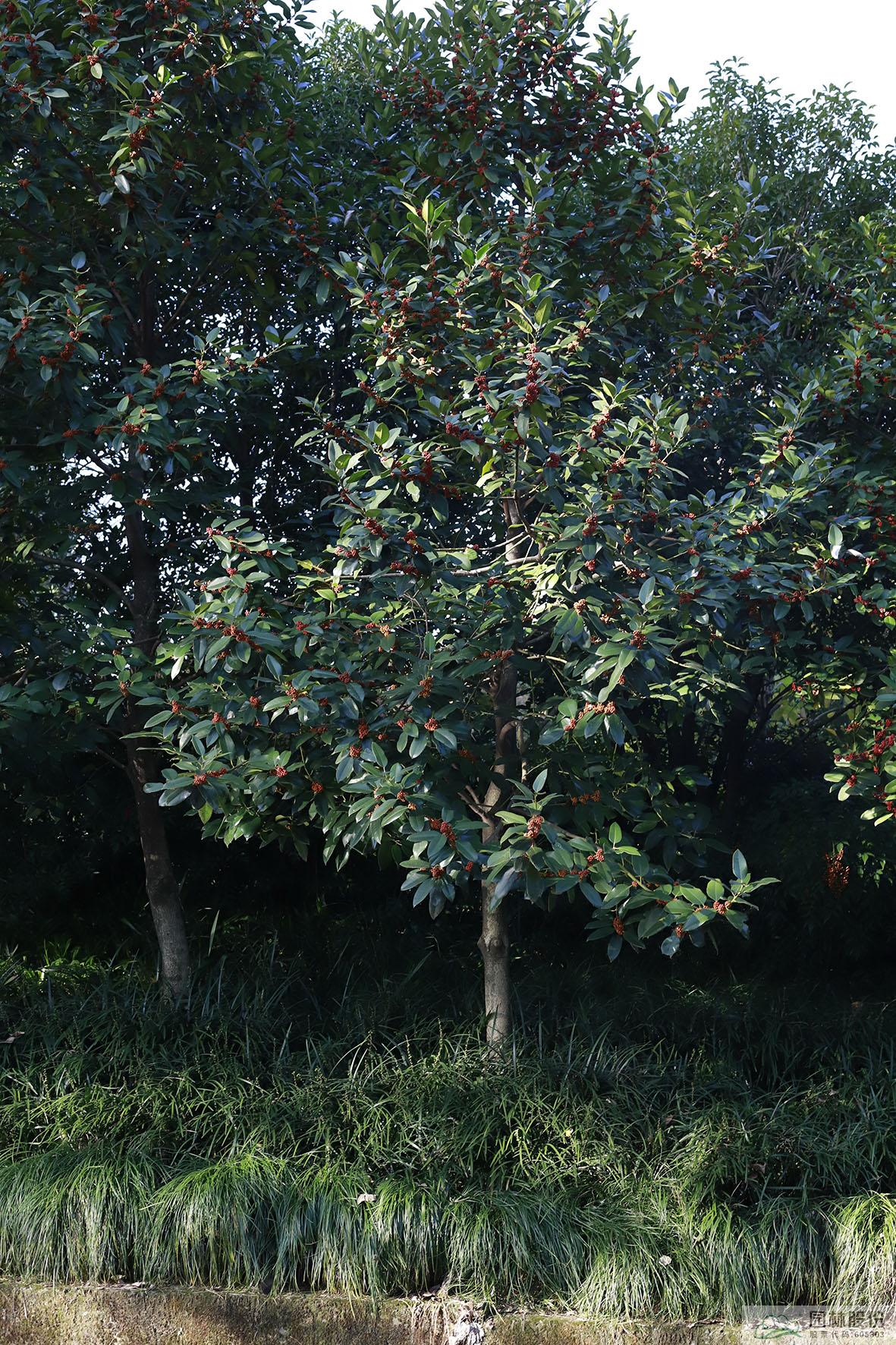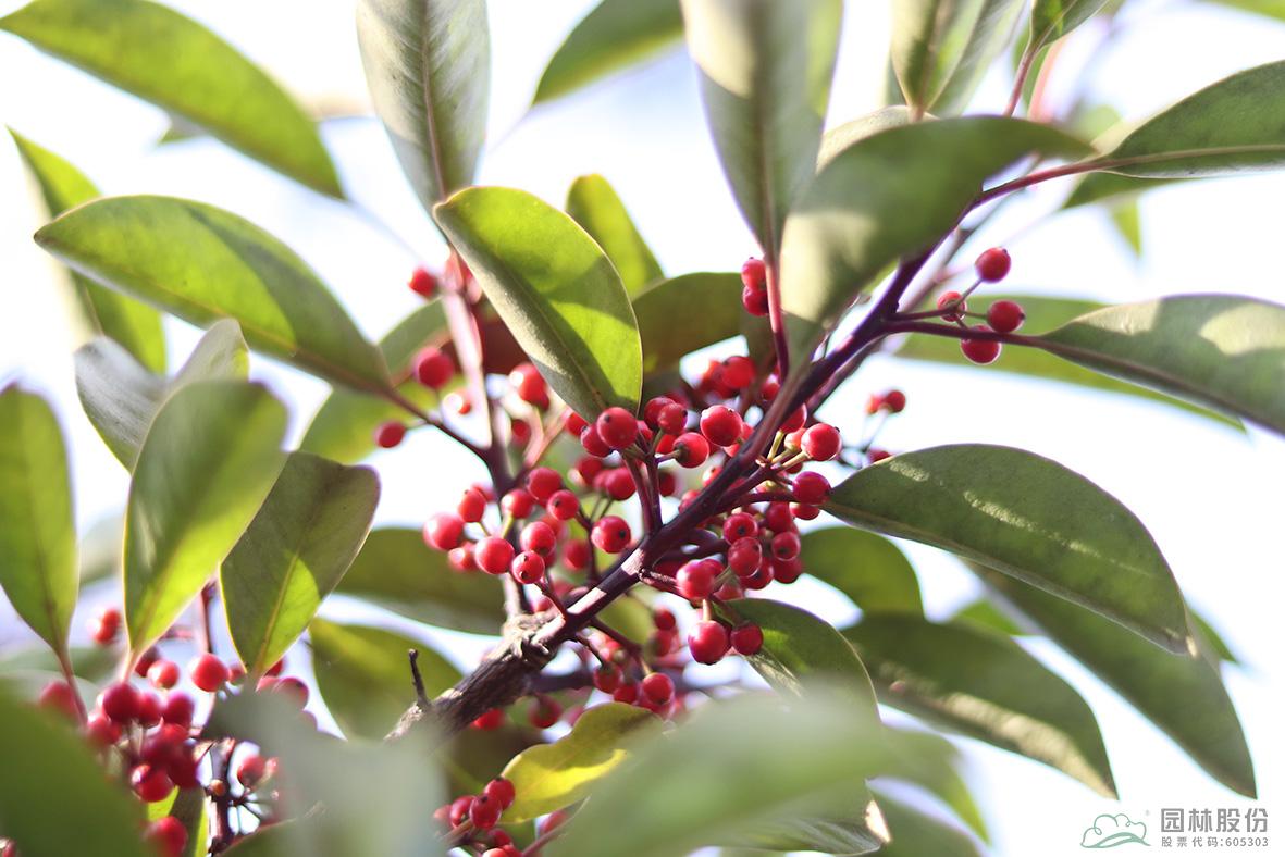 鐵冬青:其葉子四季常青,故名鐵冬青。為常綠喬木或灌木,高可達20米,葉全緣。果實紅色,紅若丹珠,小巧可人。掛果期長,能從10月一直持續(xù)至來年3月。因有多子多孫,興旺發(fā)達之意,在民間俗稱“萬子千紅樹”。樹皮或根皮為中藥“救必應”,具清熱解毒,利濕的功效。為優(yōu)良觀果樹種,適宜在園林中孤植或群植。