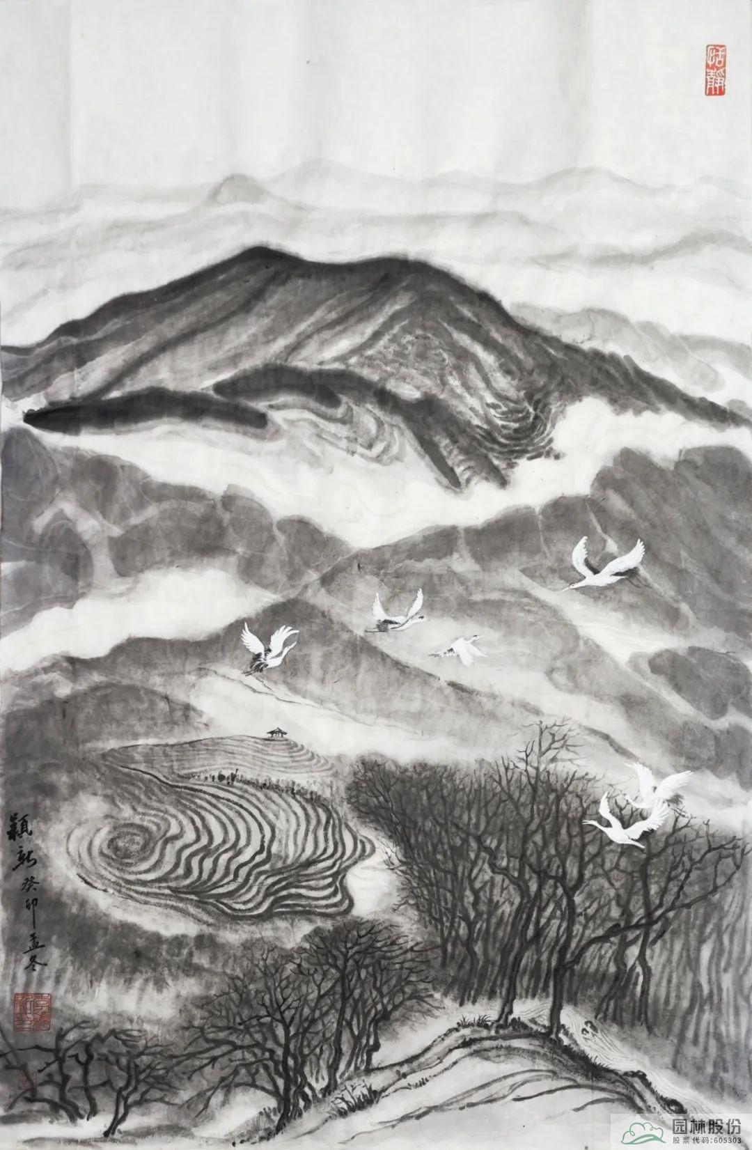 其中,杭州市園林綠化股份有限公司辦公室主任李穎新以徑山美景為創(chuàng)作內(nèi)容的書畫作品成功入選前20名。作品以杭州徑山及國家級美麗休閑鄉(xiāng)村-小古城村的自然景觀、鄉(xiāng)村風(fēng)情、茶園風(fēng)貌、翩翩白鷺等作為創(chuàng)作素材,主要表達(dá)在新時(shí)代背景下,隨著鄉(xiāng)村振興戰(zhàn)略的全面推進(jìn),一幅幅人與自然和諧共生的美麗畫卷正在神州大地徐徐展現(xiàn)。圖中山巒起伏、云霧氤氳、茶園連綿、溪水潺潺、白鷺紛飛……共同繪就一幅意境唯美的鄉(xiāng)村風(fēng)情畫卷,留下一段令人念念不忘的鄉(xiāng)愁記憶。