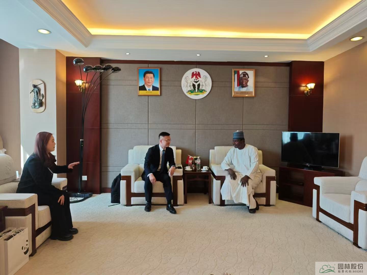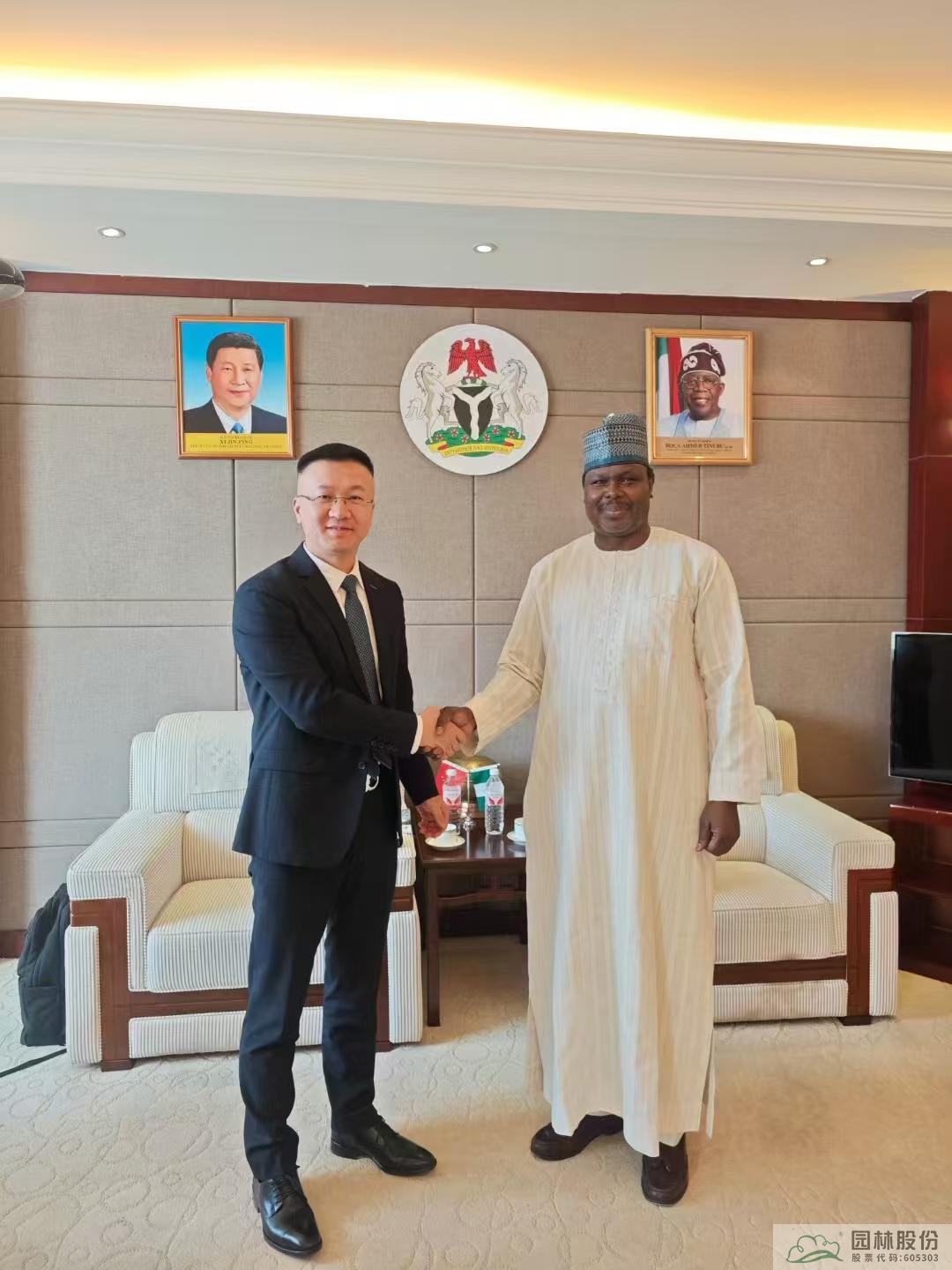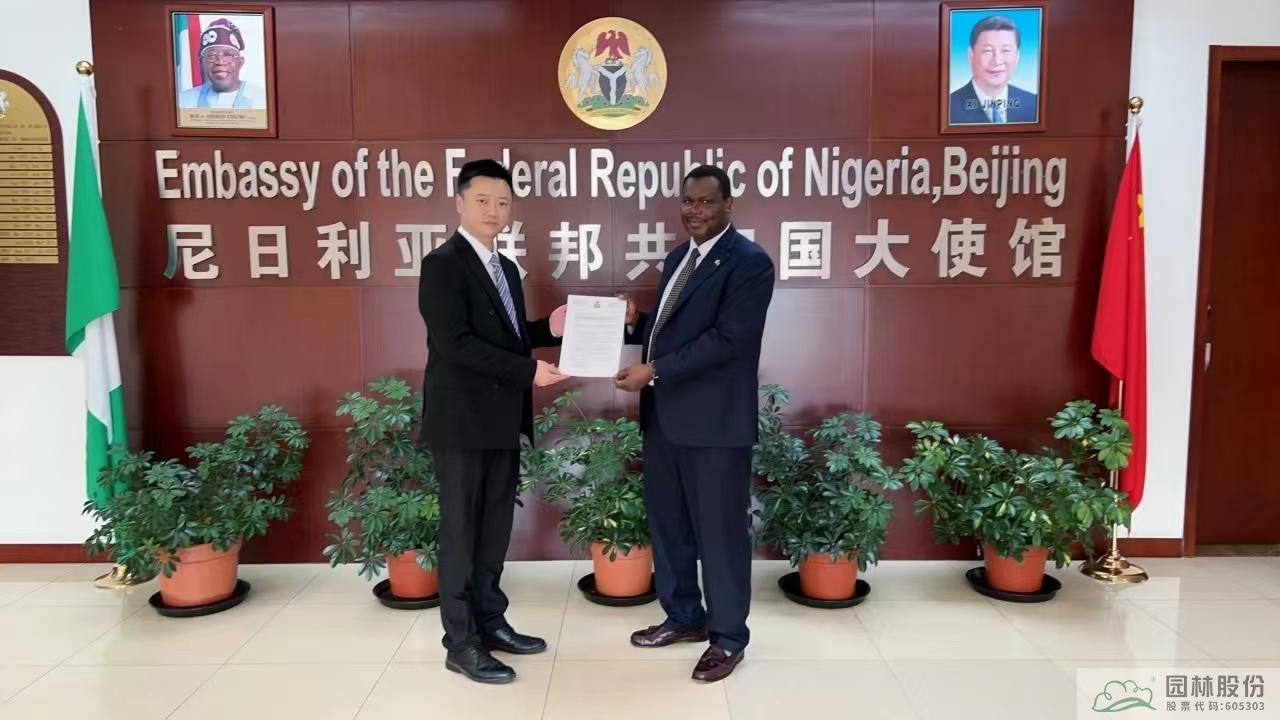2024年9月,在杭州第三屆全球數(shù)字貿(mào)易博覽會-“數(shù)智中非”產(chǎn)業(yè)對接會上,園區(qū)已取得“尼日利亞國家館”正式授權(quán)。此次拜訪尼日利亞駐華大使館,陳振華與駐華大使巴巴加納·瓦基勒(Babagana Wakil)就國家館建設(shè)、農(nóng)產(chǎn)品貿(mào)易、投資合作等議題進(jìn)行了深入交流。