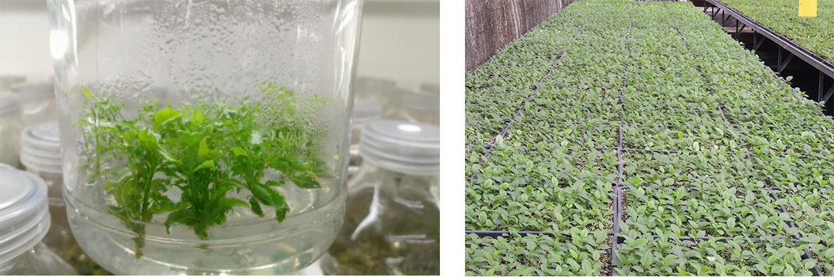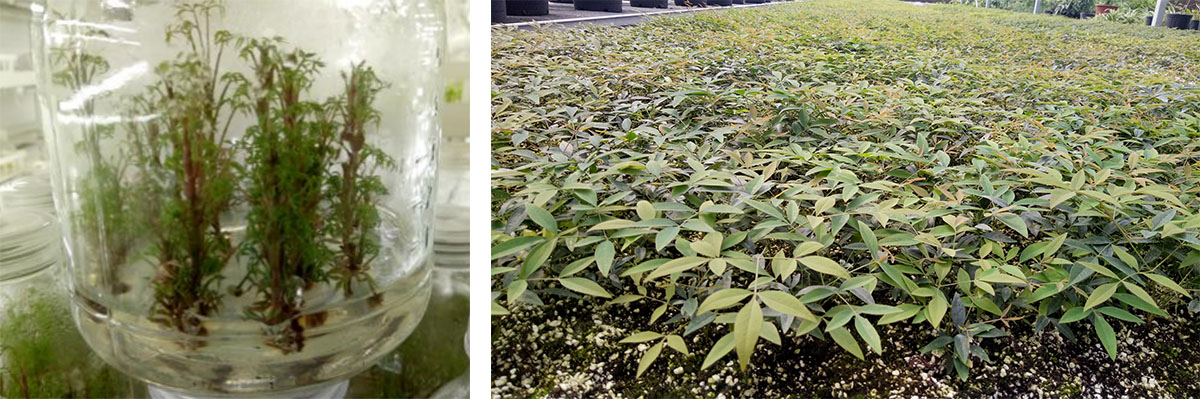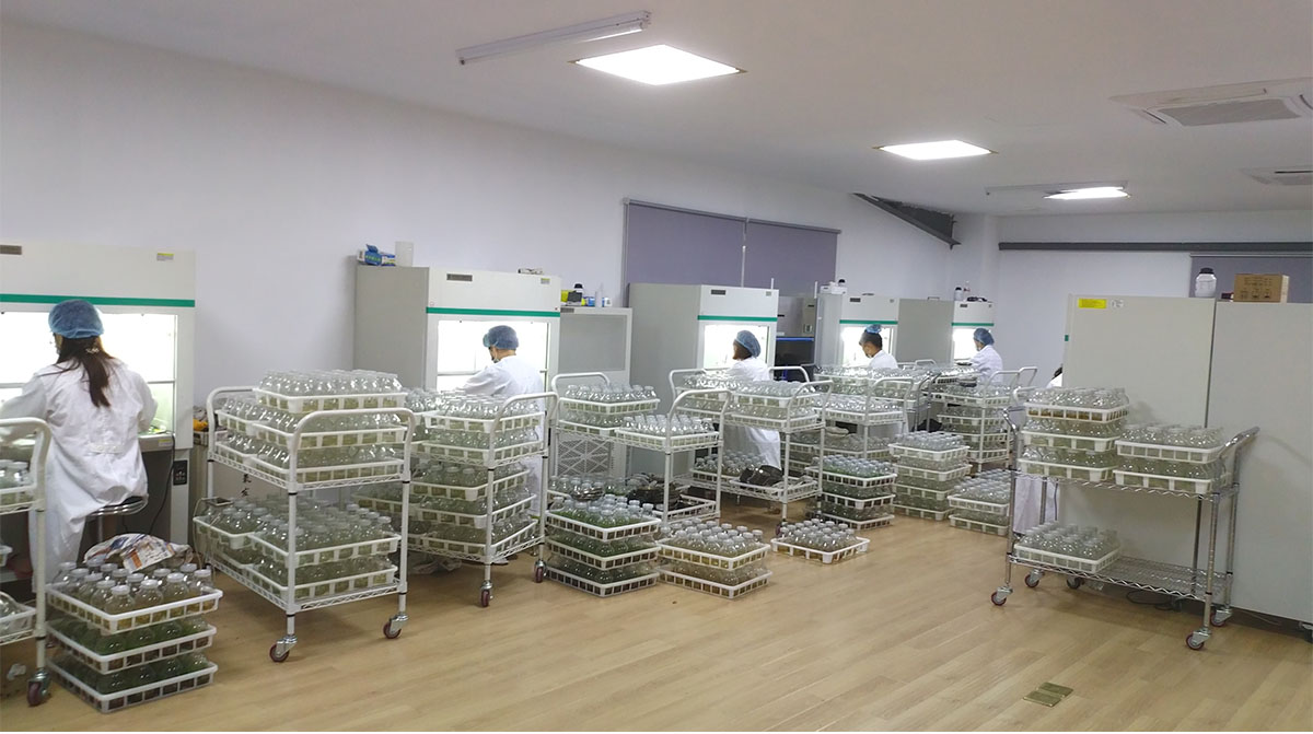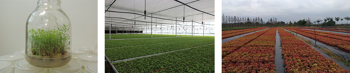 研發(fā)中心擁有1200㎡組培研發(fā)及生產(chǎn)車間,年產(chǎn)組培種苗500萬株。經(jīng)過多年的研發(fā),建立了南天竹屬、冬青屬、礬根屬、紫金牛屬、繡球?qū)?、櫻屬等多種植物組培快繁技術(shù)體系,在木本植物組培快繁技術(shù)方面處于國內(nèi)領(lǐng)先水平。