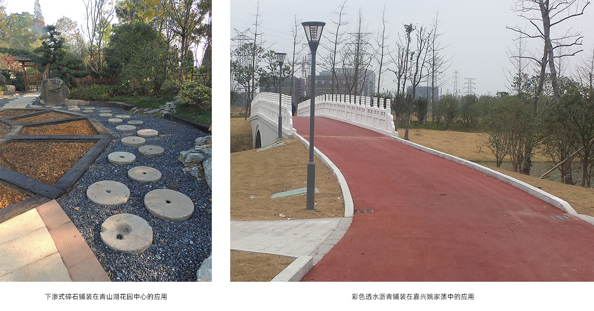 通過(guò)對(duì)鋪裝材料透氣性、生態(tài)性研究及鋪裝結(jié)構(gòu)層施工工藝改進(jìn)等措施,結(jié)合園林景觀地形處理、設(shè)置排水設(shè)施等手段,建立生態(tài)型鋪裝體系。