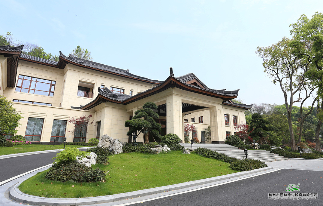 西湖山莊隨山勢而建,與西湖山水和諧相融,四周綠意盎然,風(fēng)景如畫。項(xiàng)目充分利用場地原生態(tài)的景觀特點(diǎn),依勢成景,因樹設(shè)景,文化為景,營造出建筑隱、樹林茂、花卉雅、四時(shí)賞的景觀特色。筑以山勝,境因樹幽,曠奧有度,大氣大方,成就杭州秀美新景觀。